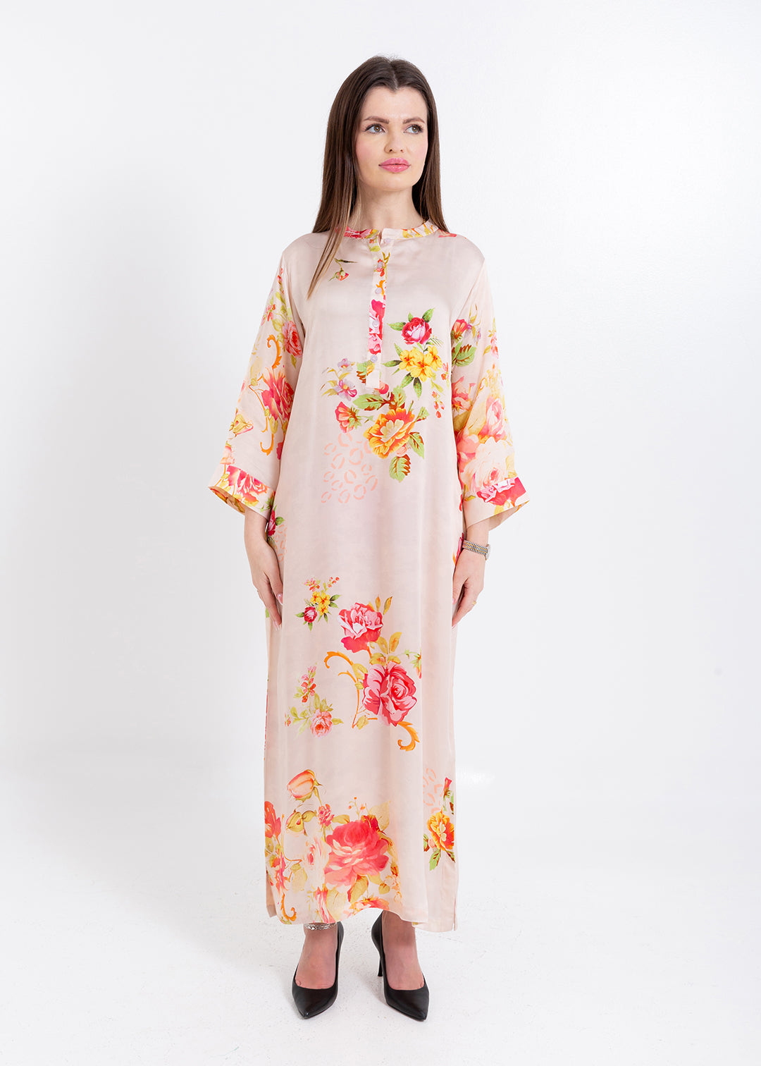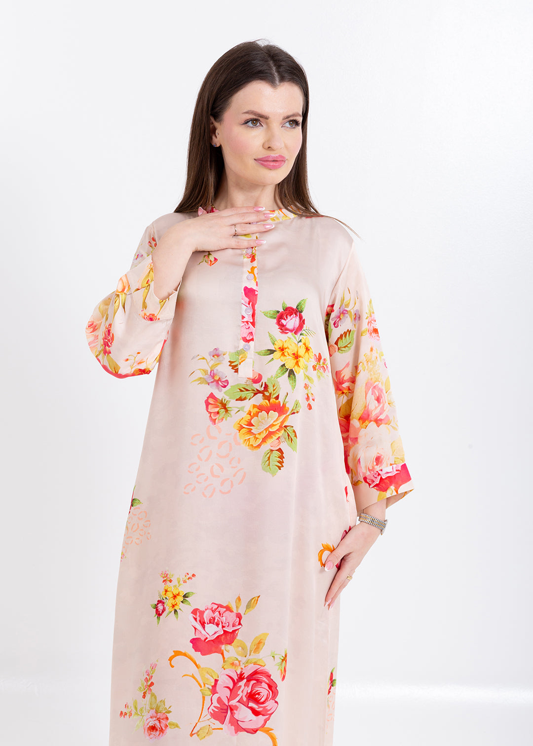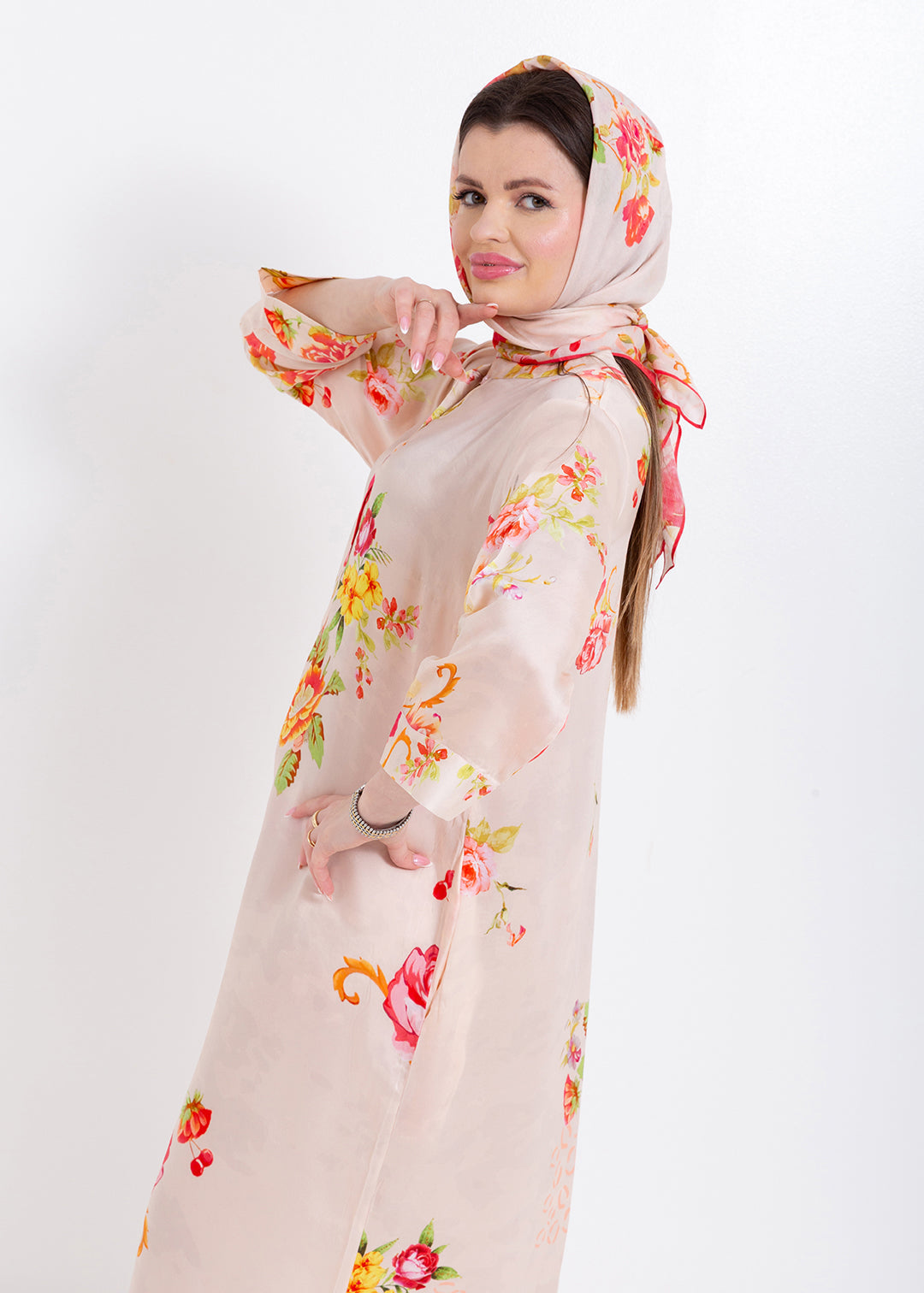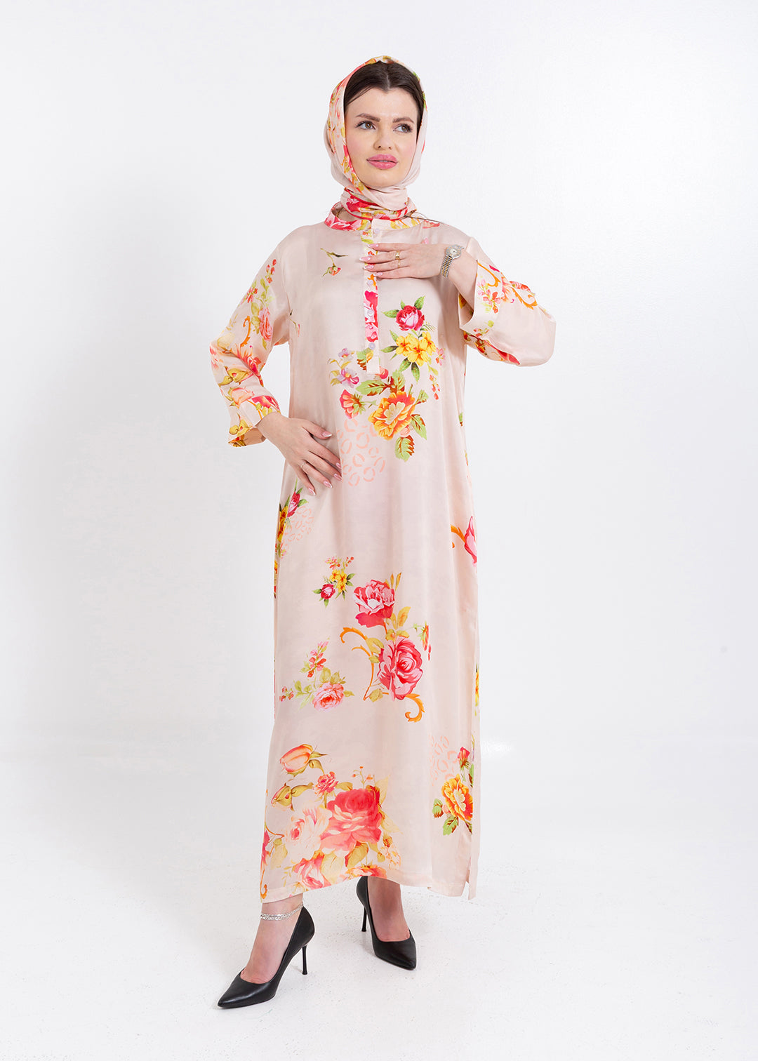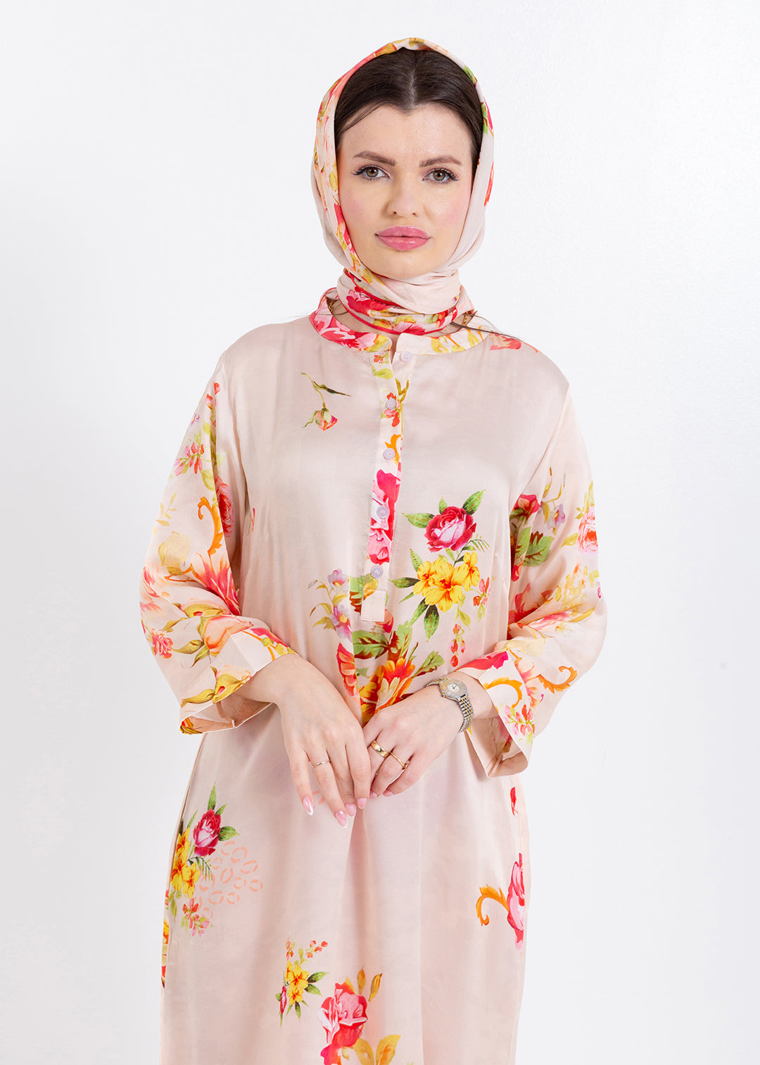 Aaliya Blush Rose Cupro Satin Kaftan Set with Matching Scarf