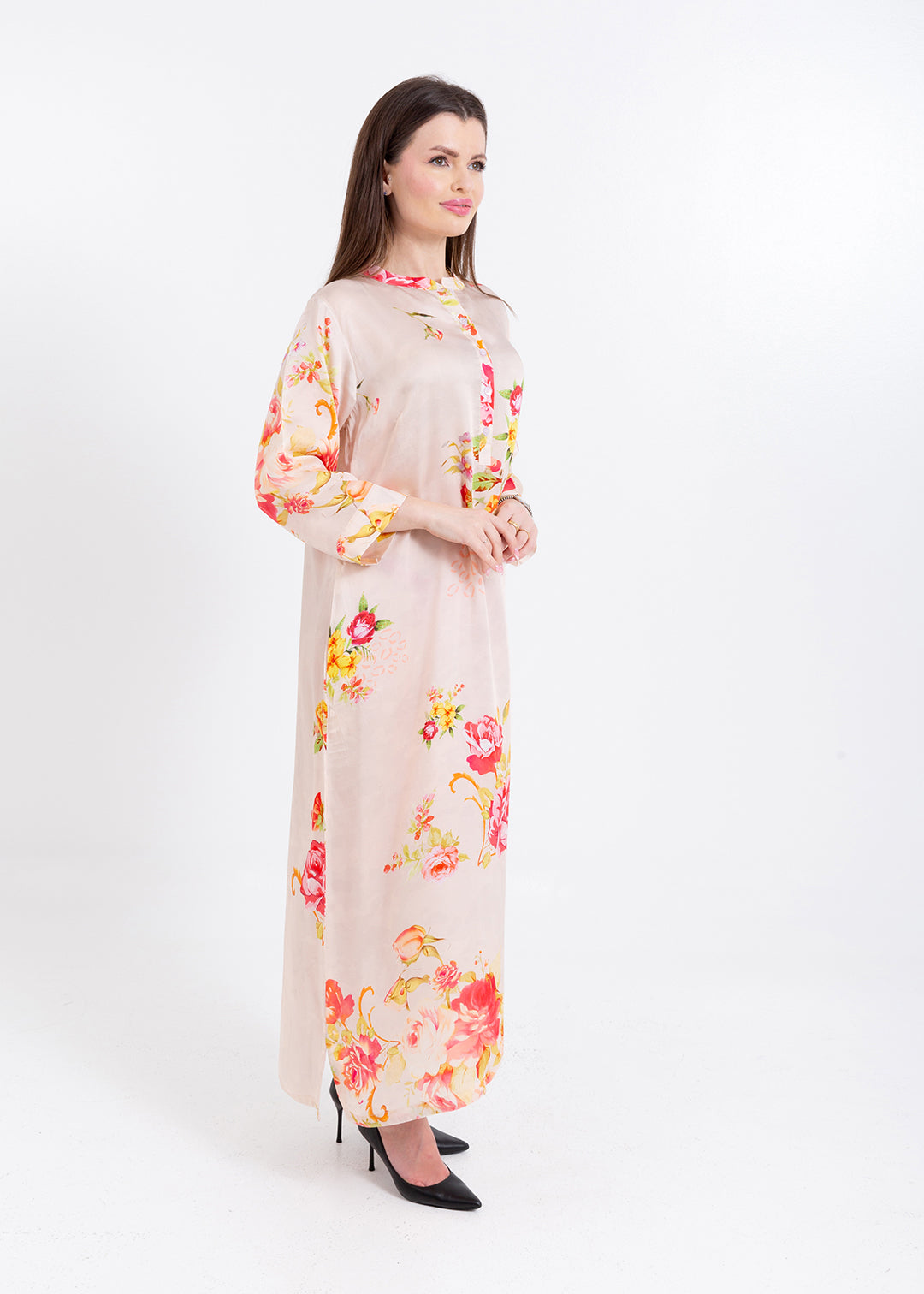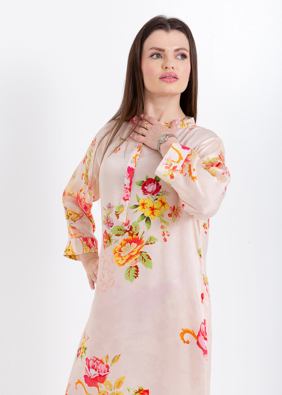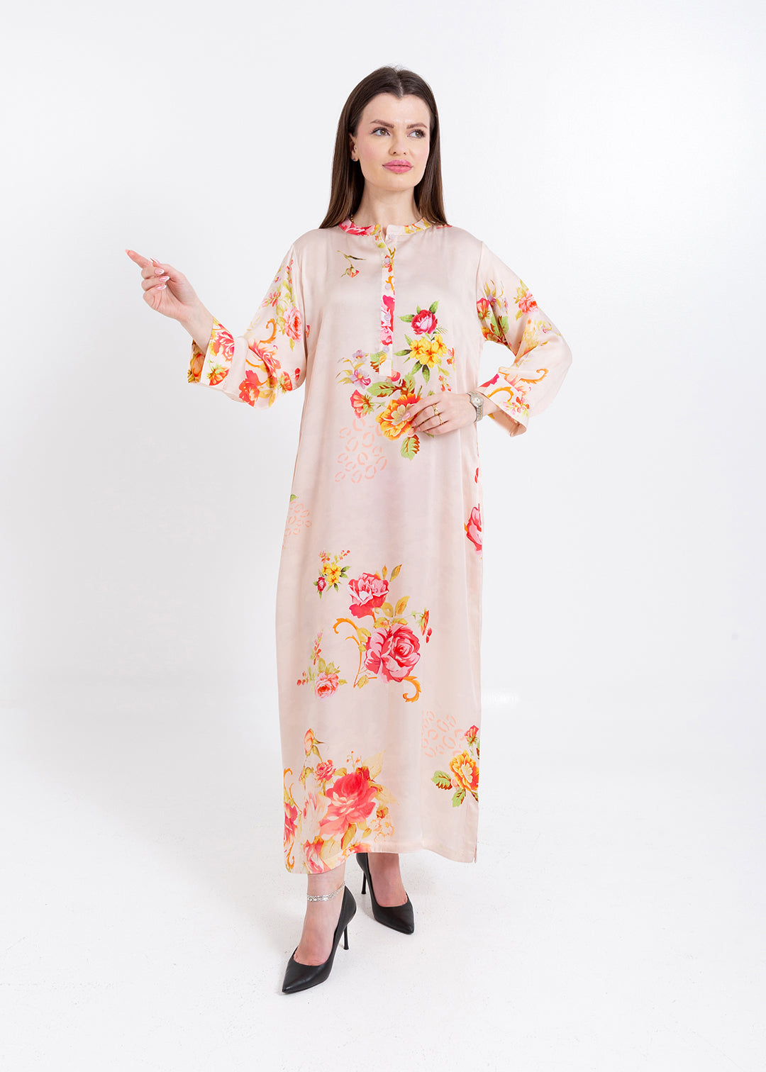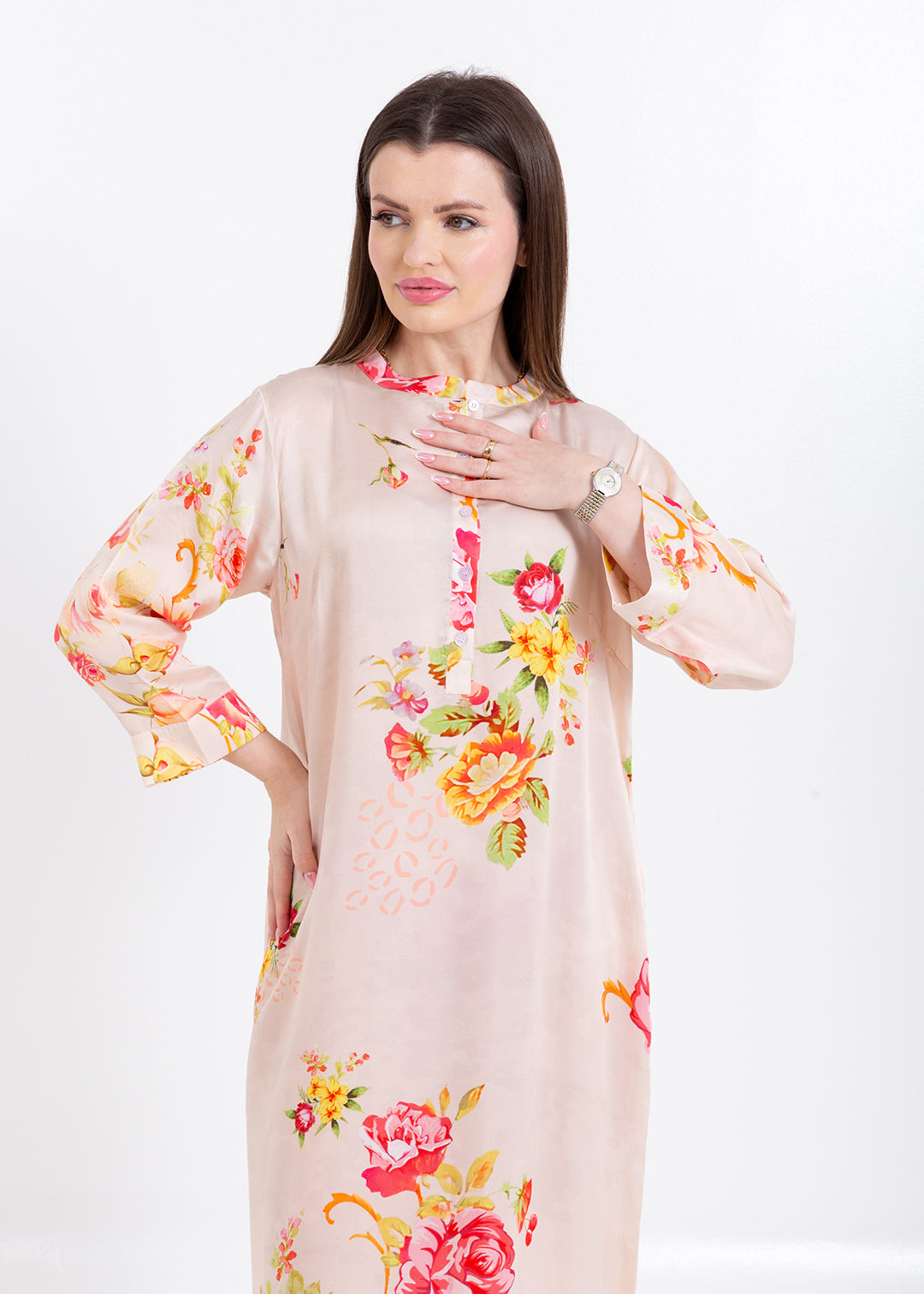 Aaliya Blush Rose Cupro Satin Kaftan Set with Matching Scarf
