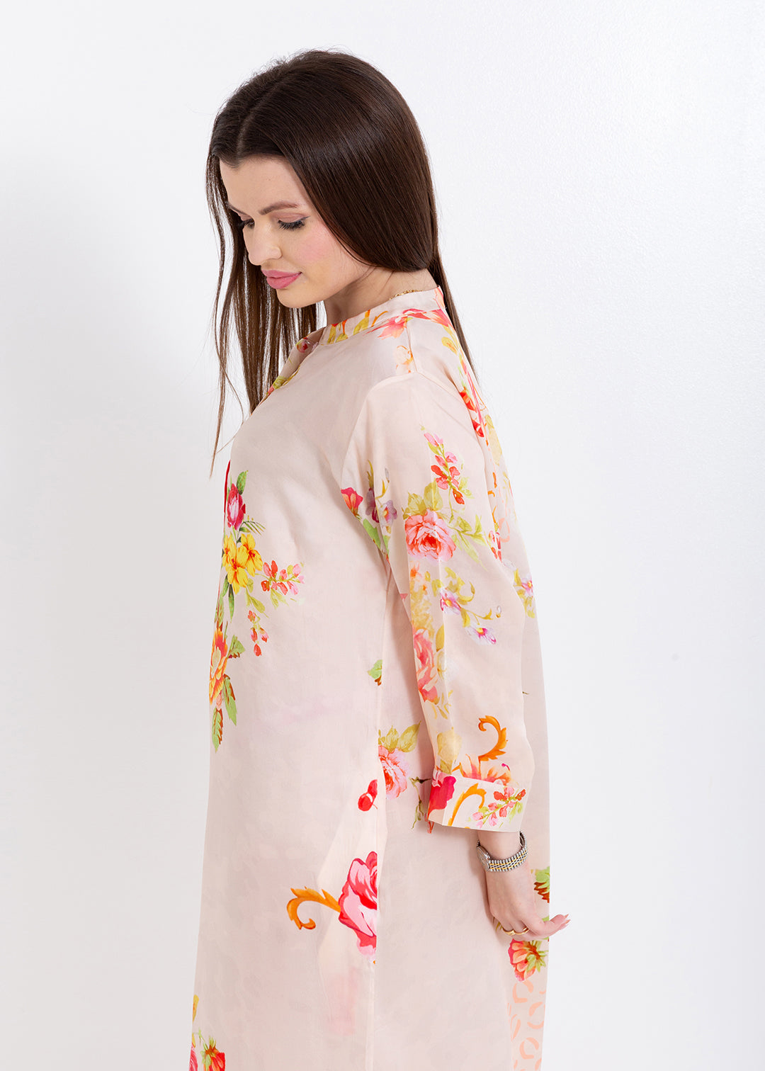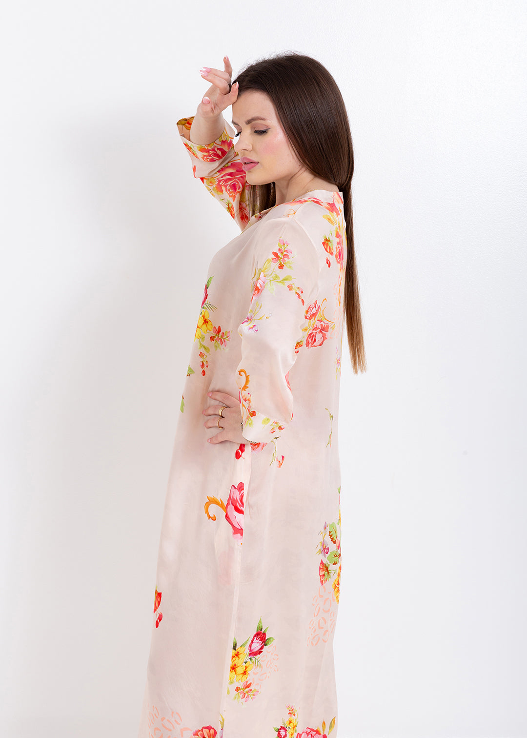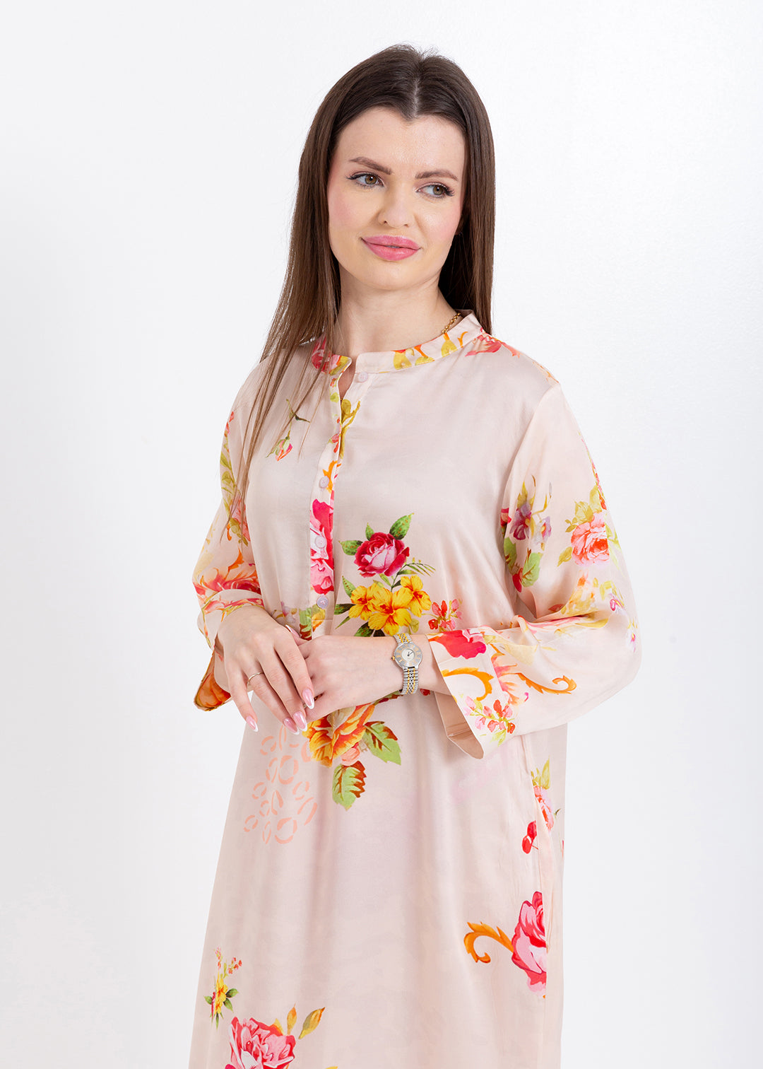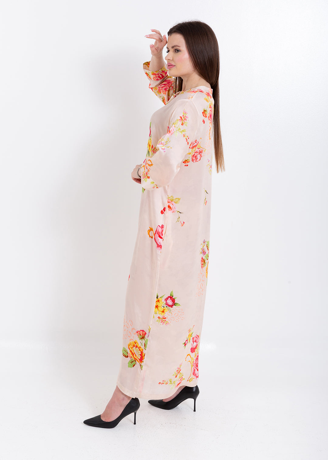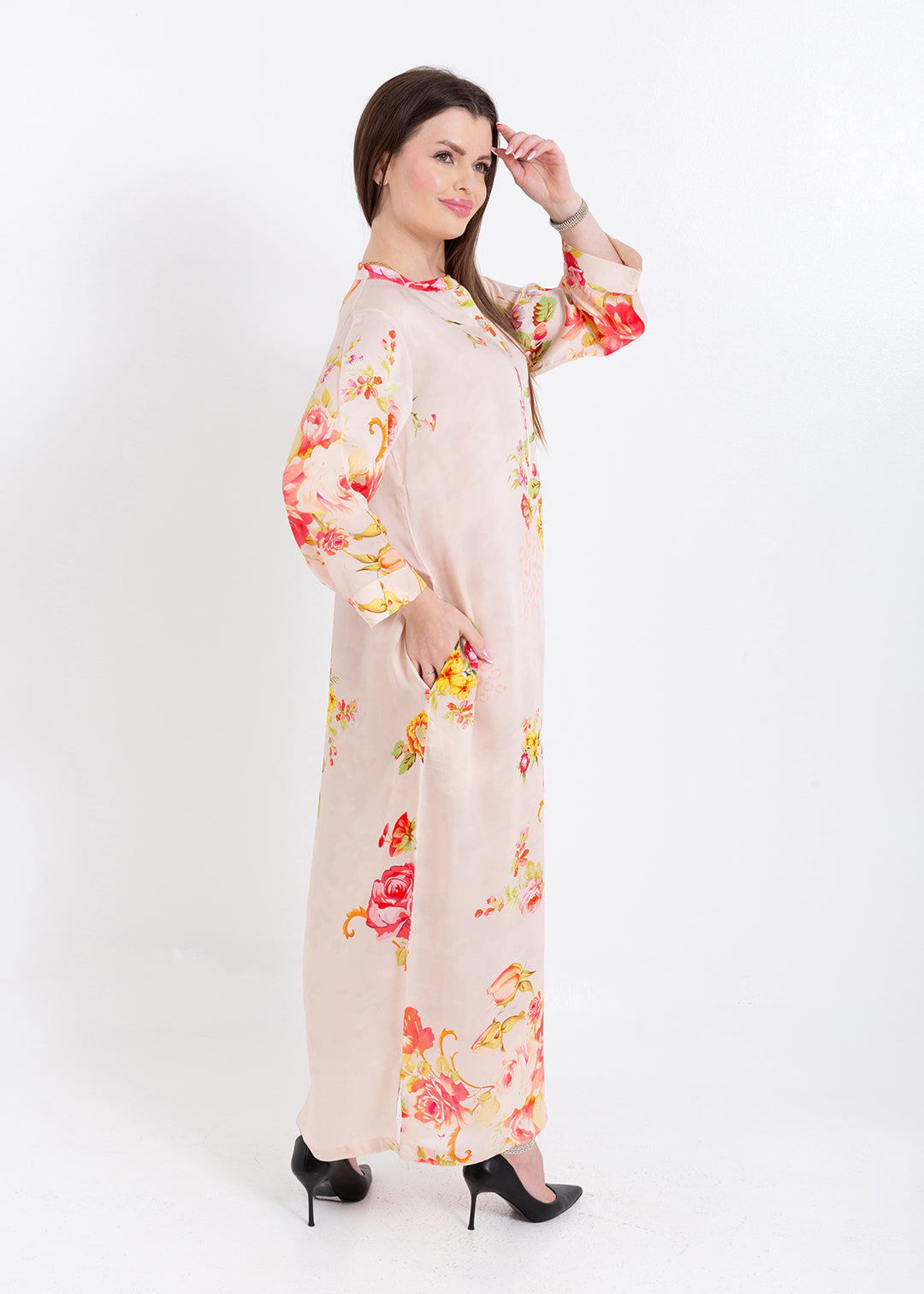 Aaliya Blush Rose Cupro Satin Kaftan Set with Matching Scarf