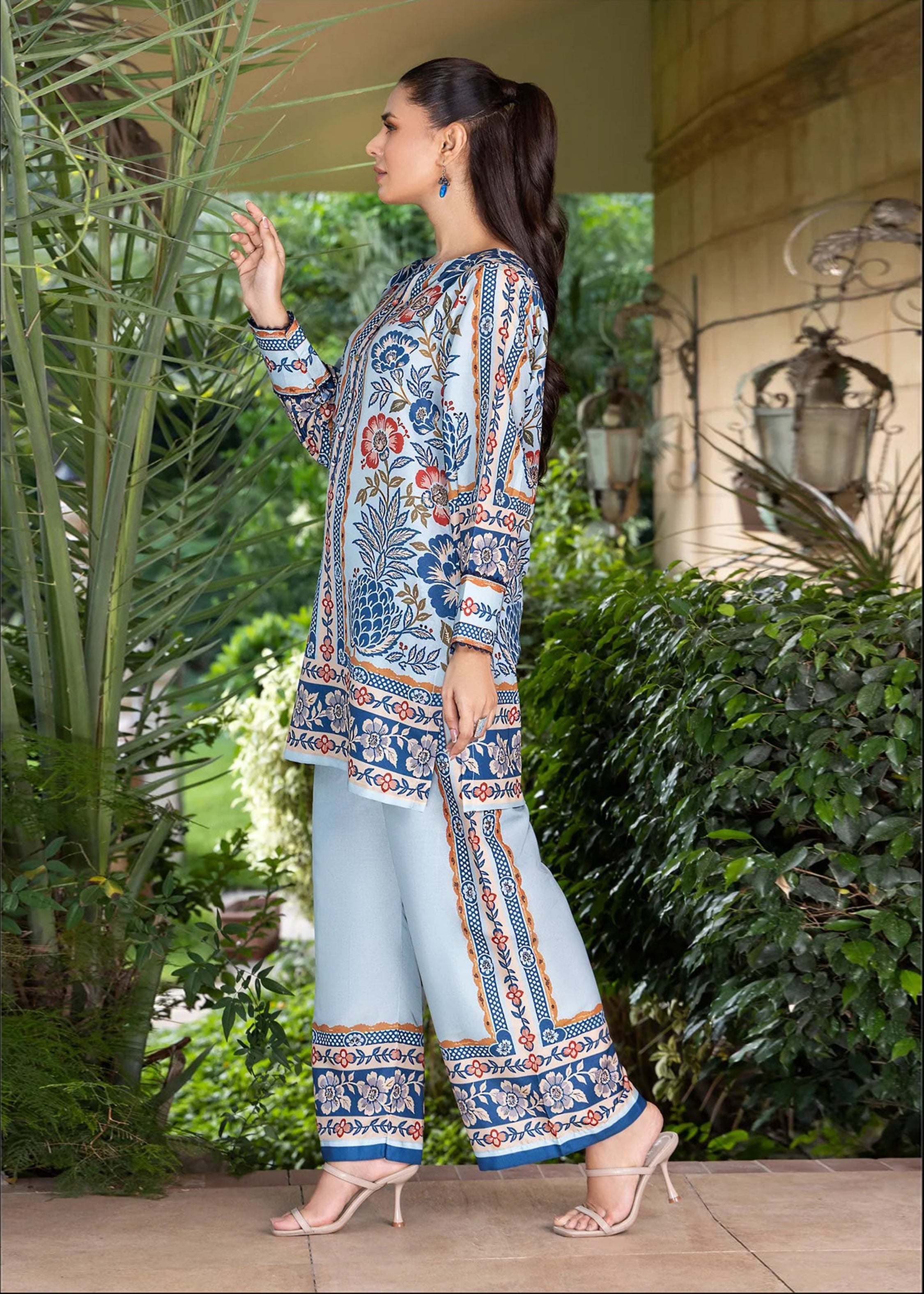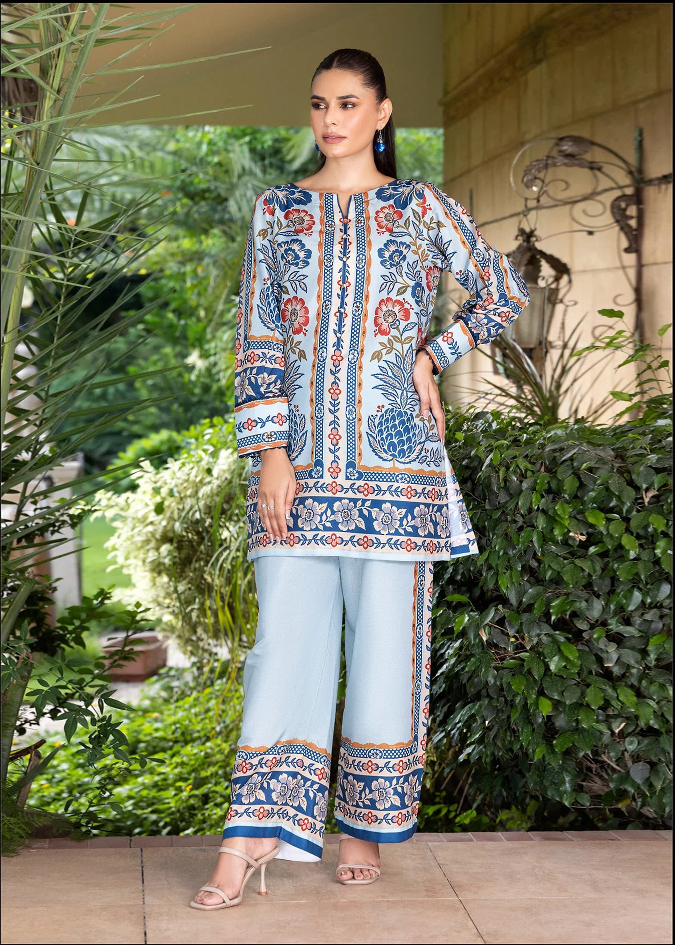 Make a sophisticated statement with this beautifully composed Blue Garden Co-Ord Set, designed for effortless elegance and all-day comfort. The kurta-style top features an intricately designed botanical print with symmetrical panels of florals and vines in shades of deep blue, rust red, and ochre. Coordinated wide-leg trousers carry matching borders to complete the polished yet breezy look.