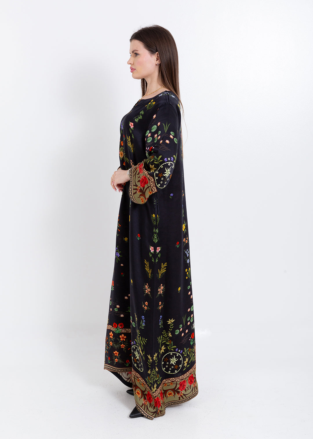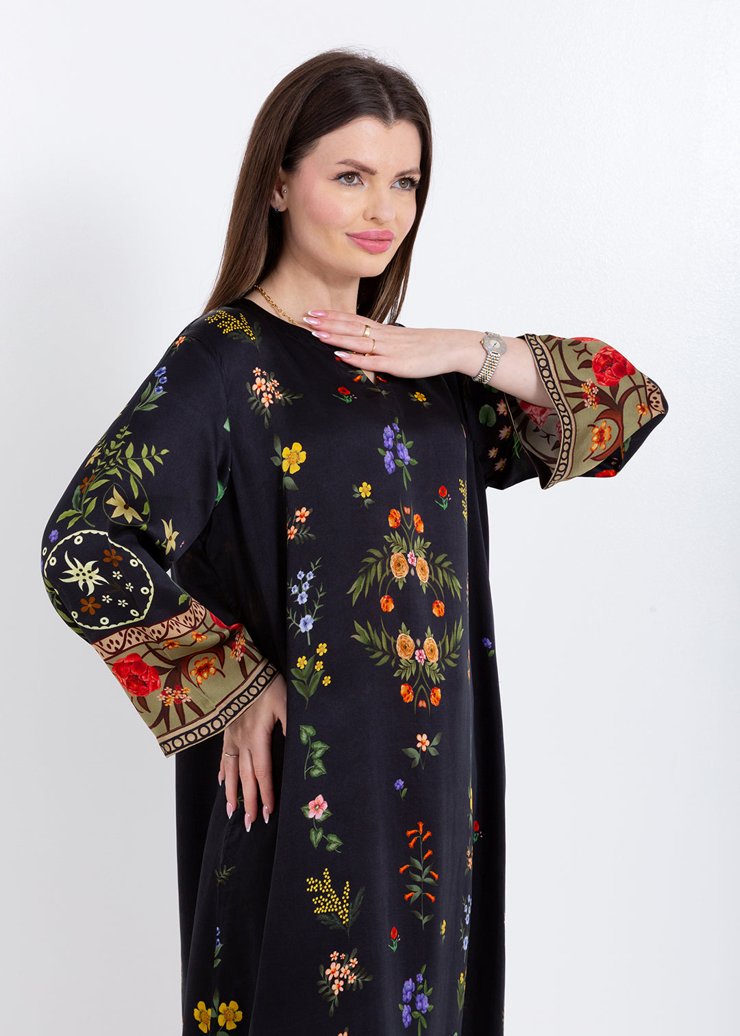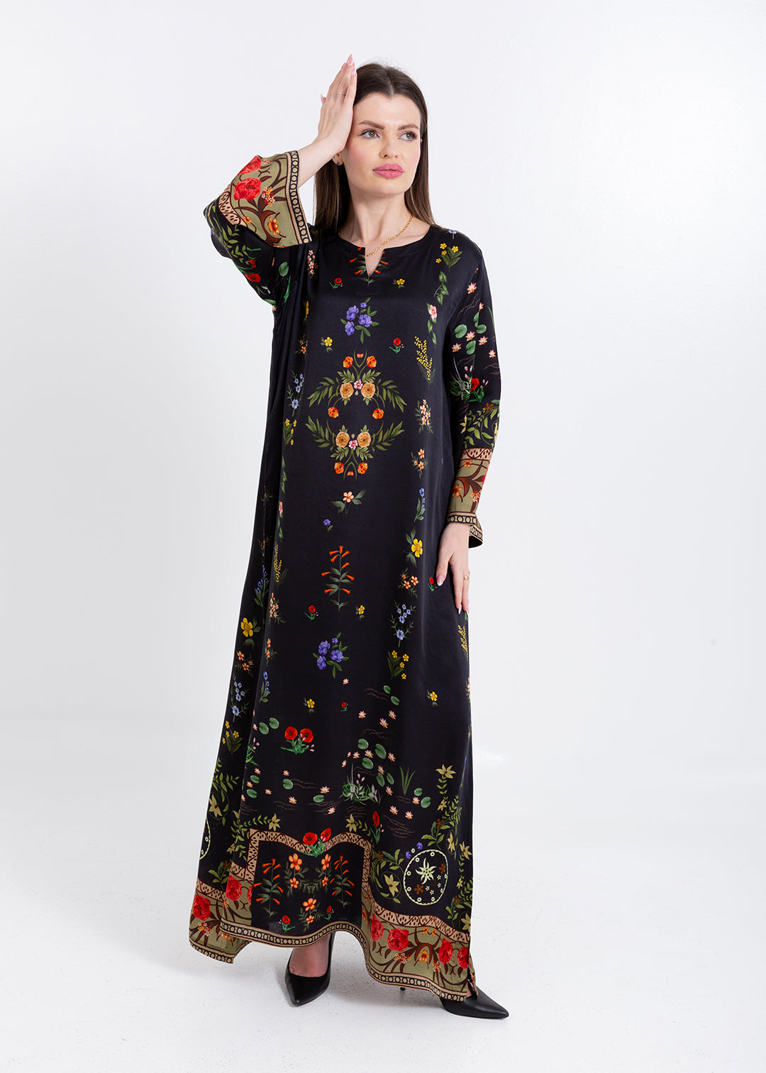 Product Description Graceful and timeless, the Meher Black Garden Kaftan Set is crafted in luxurious Premium Cupro Satin, offering a smooth, breathable feel...