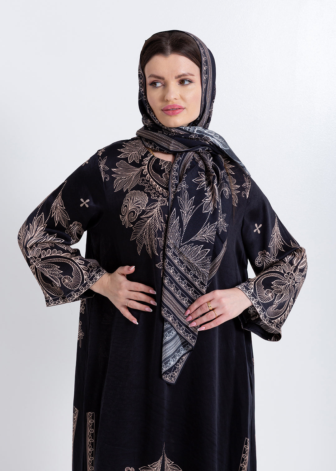 Product Description Elegant, timeless, and richly detailed, the Noora Black Heritage Cupro Satin Scarf is crafted from luxurious Premium Cupro Satin, offering a...