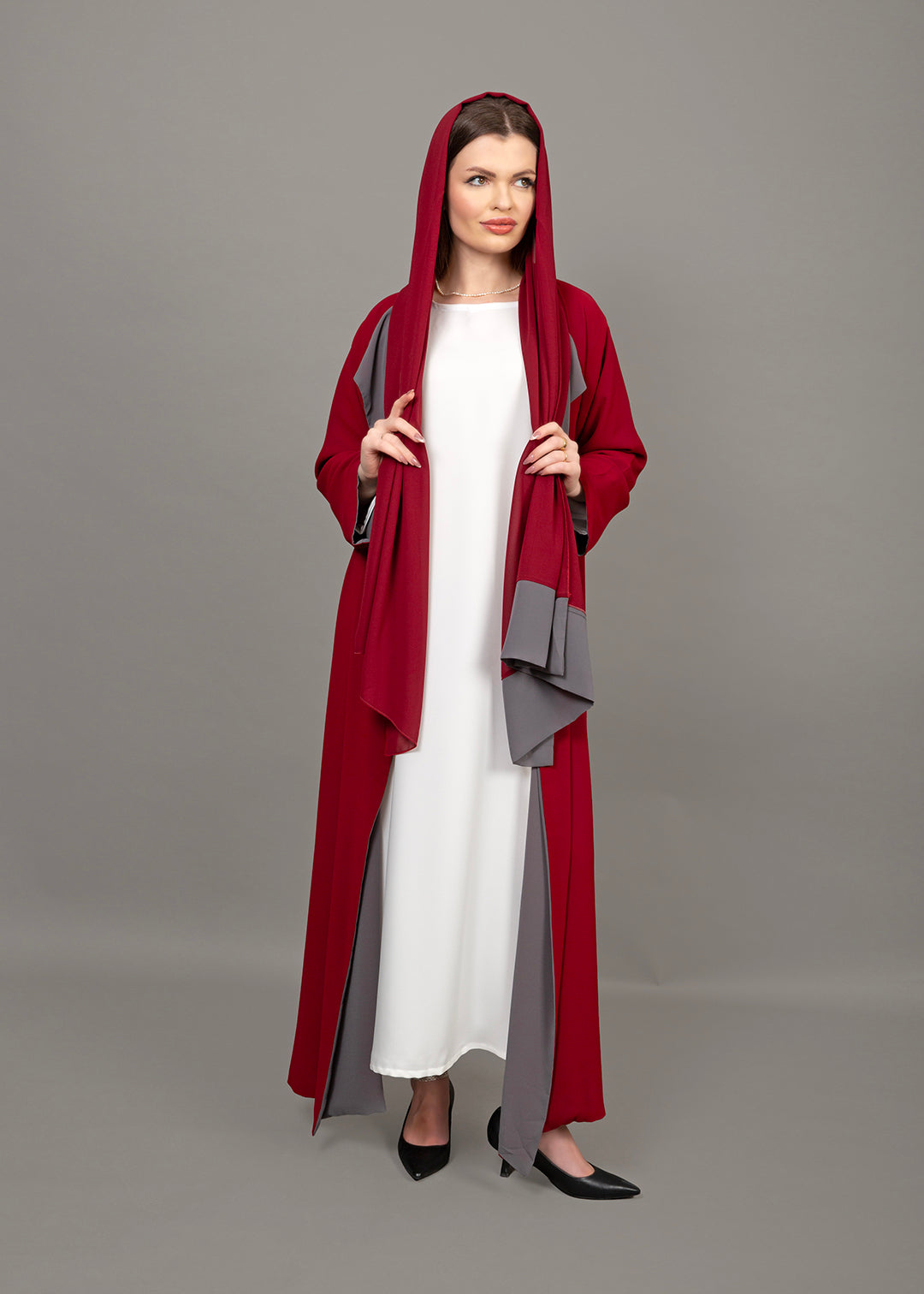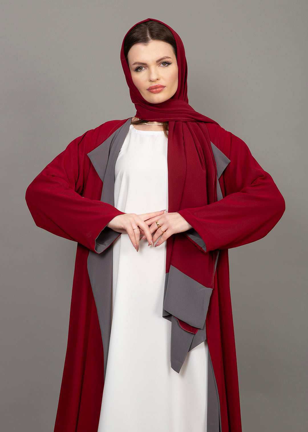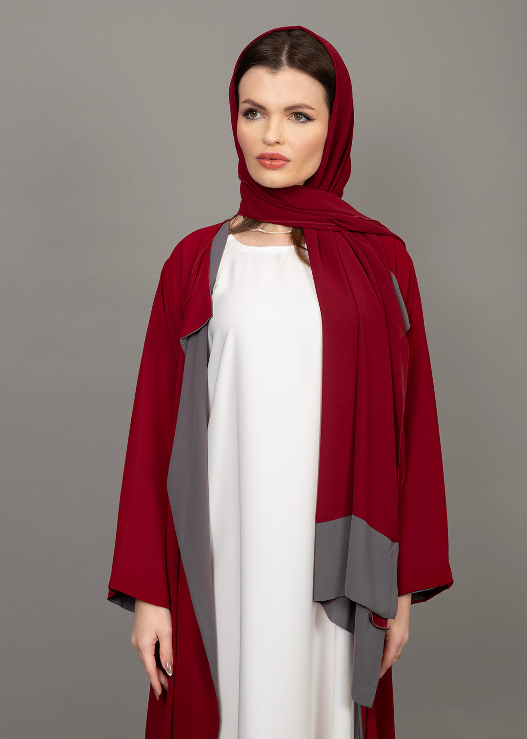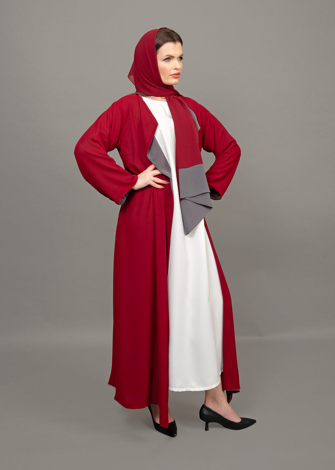 Reversible Burgundy & Grey 3-Piece Abaya Set