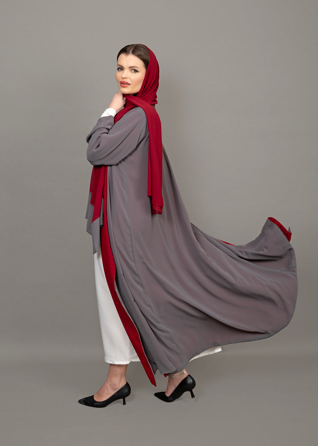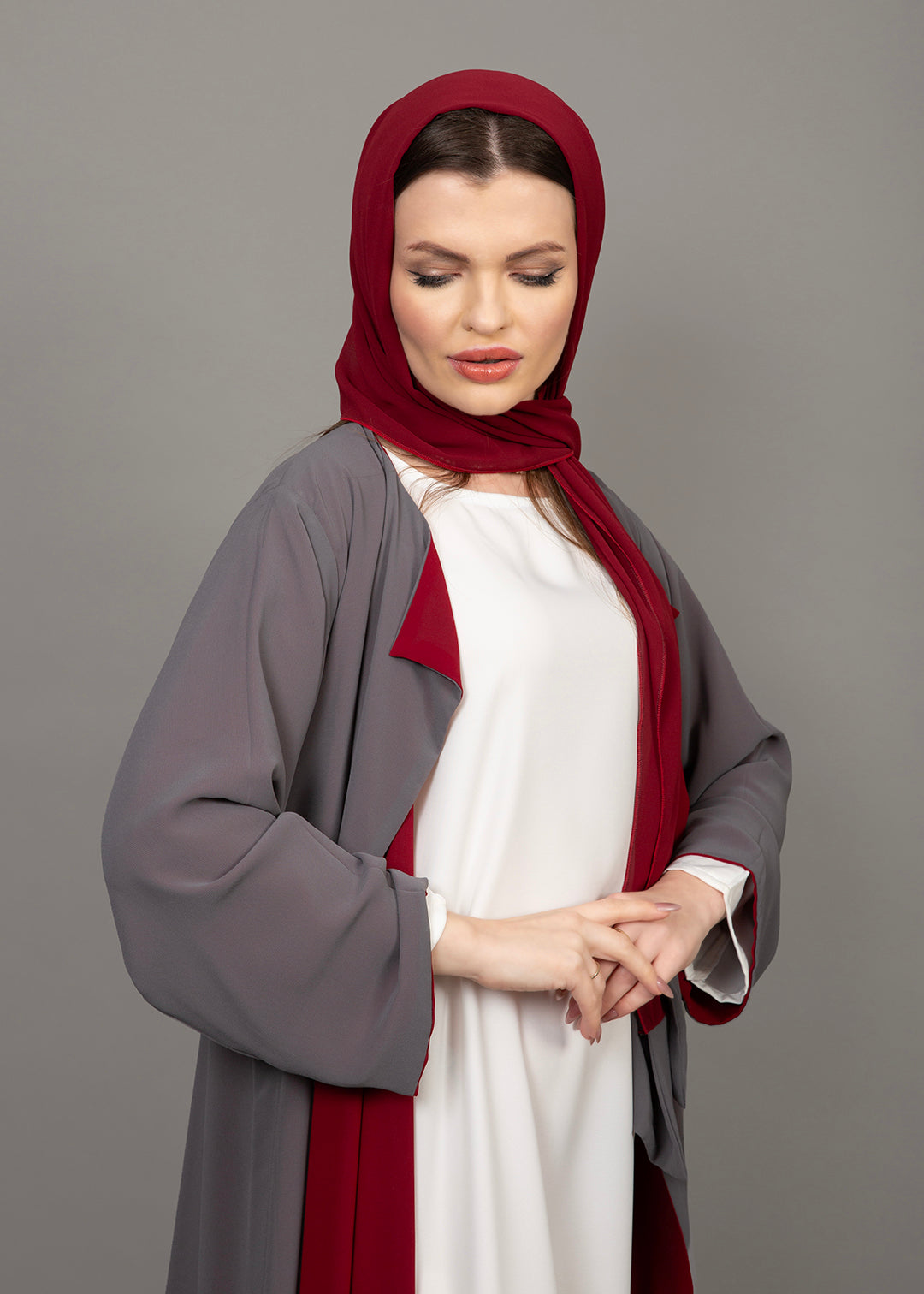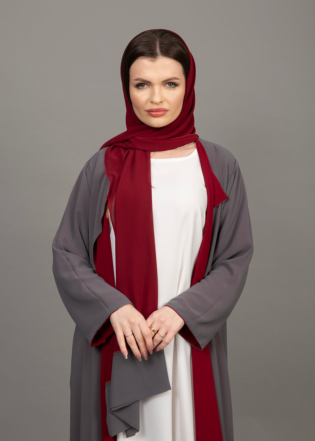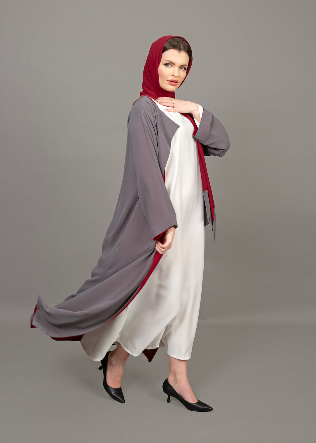 Reversible Burgundy & Grey 3-Piece Abaya Set