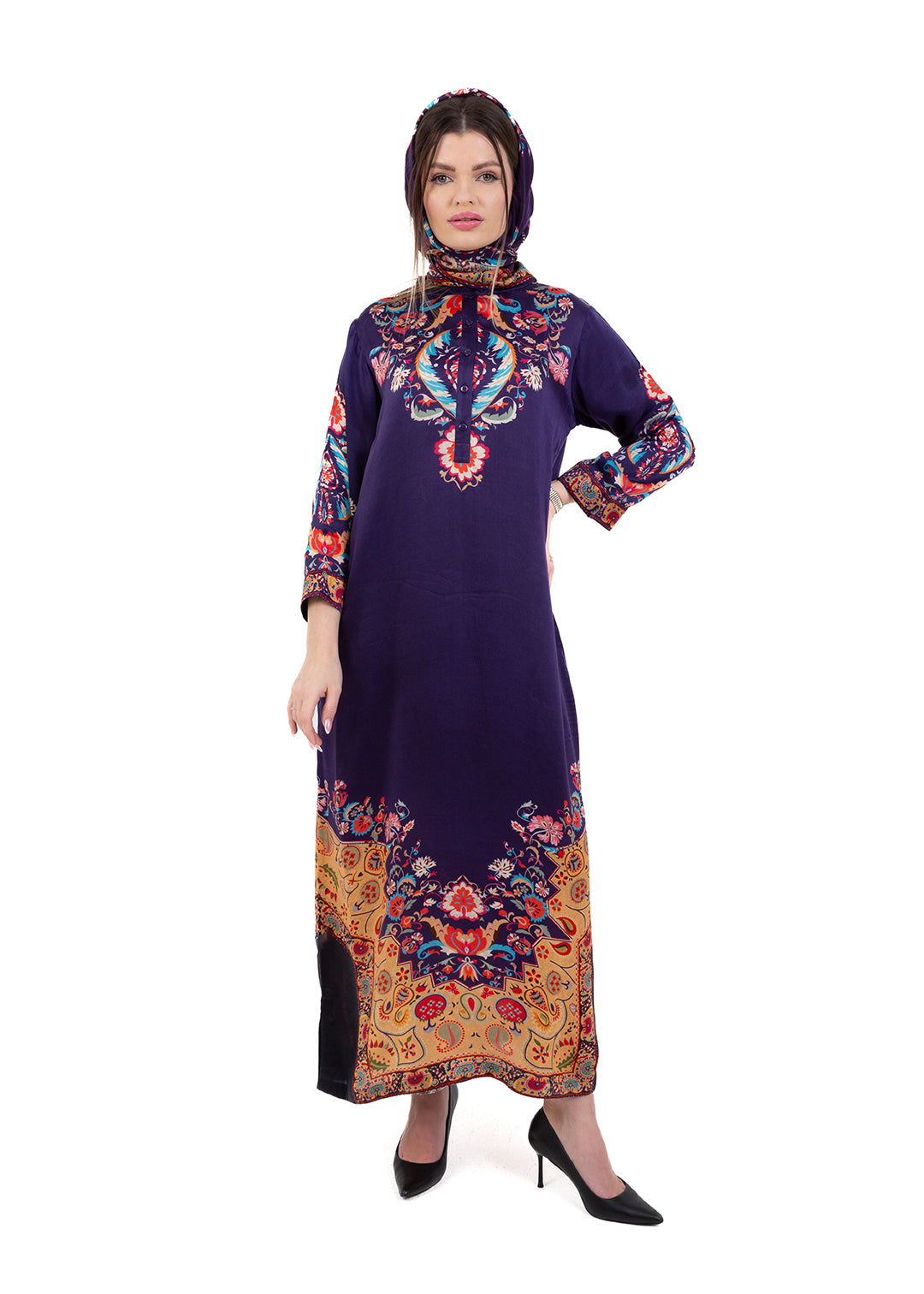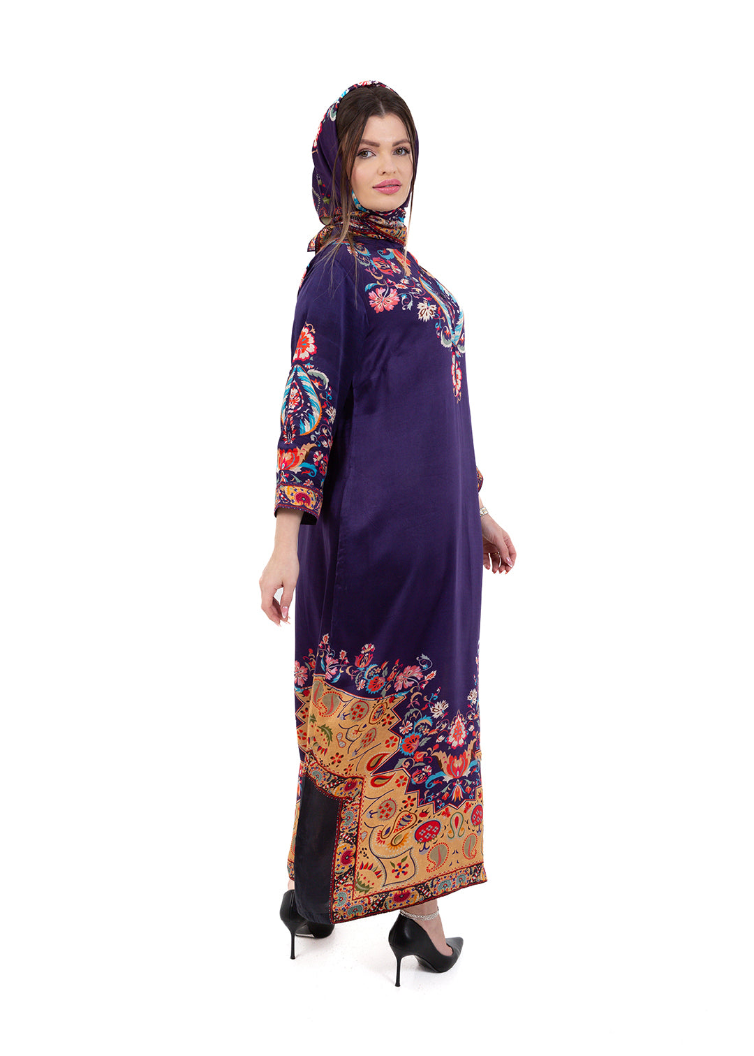 Zaria Royal Blue Cupro Satin Kaftan Set with Matching Scarf