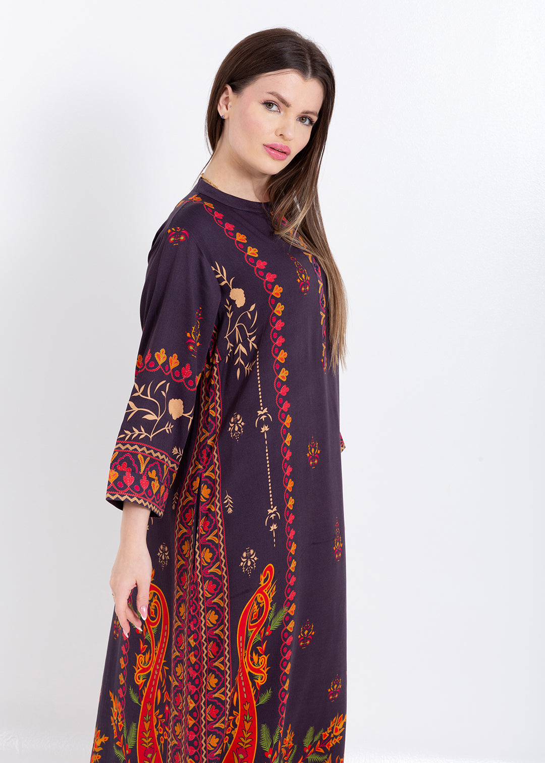 Product Description Rich, elegant, and timeless, the Zivara Wine Plum Kaftan Set is crafted from luxurious Premium Cupro Satin, offering a smooth, breathable...
