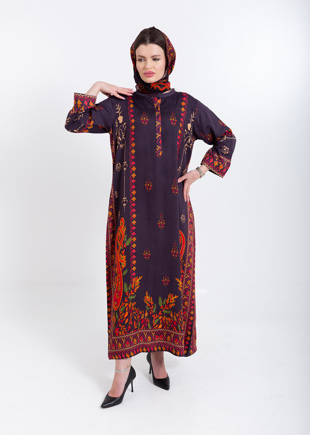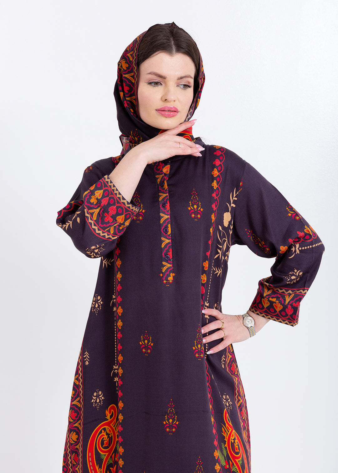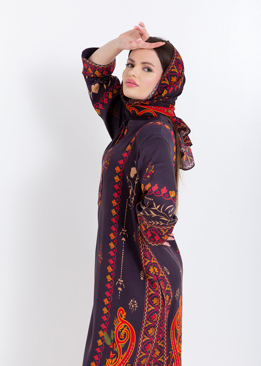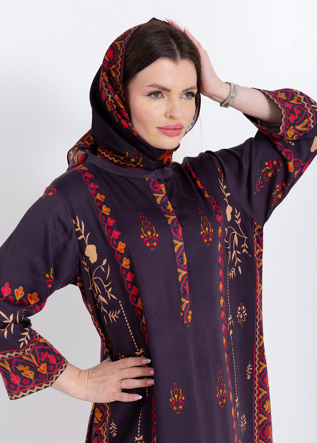 Zivara Wine Plum Cupro Satin Kaftan Set with Matching Scarf