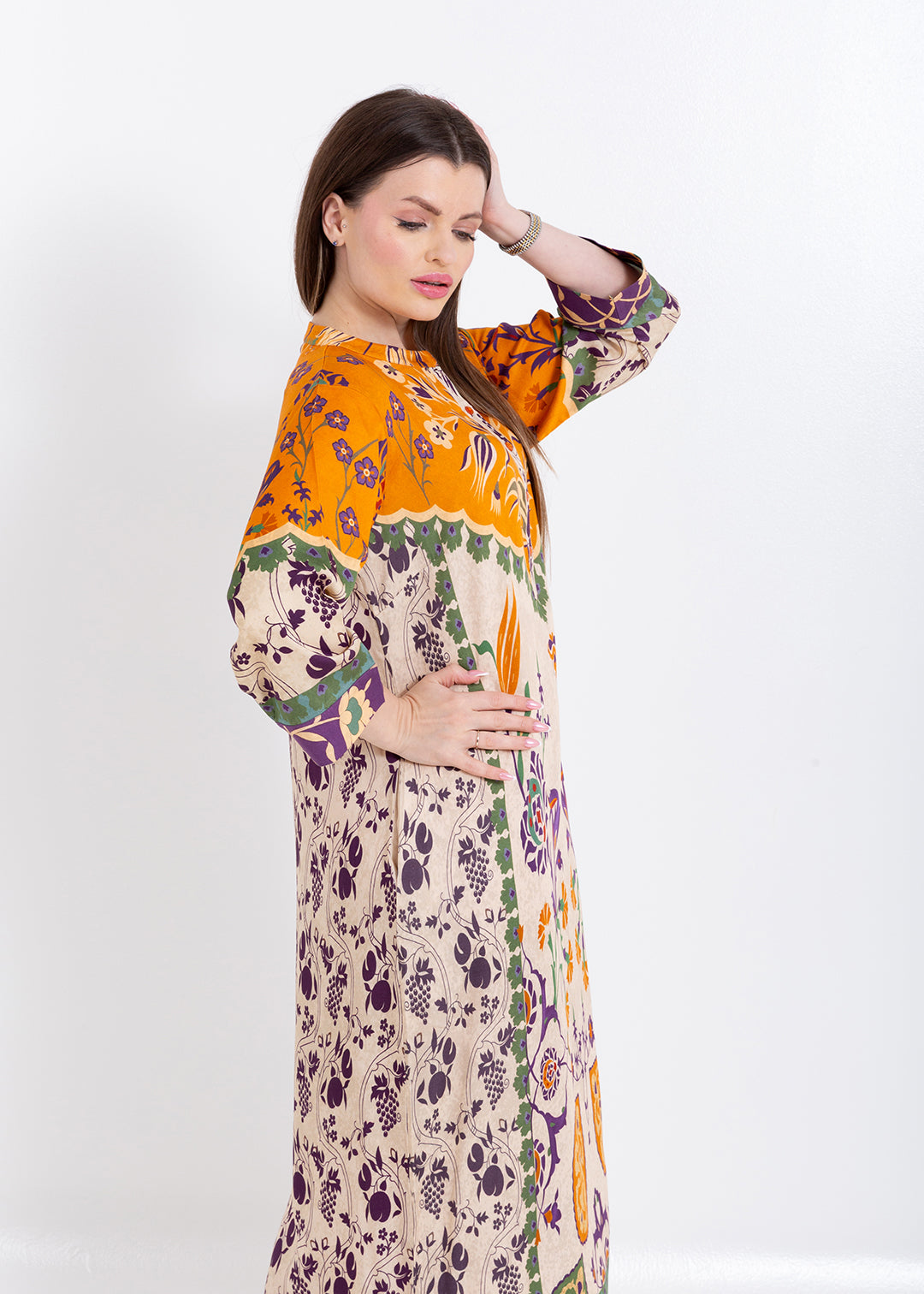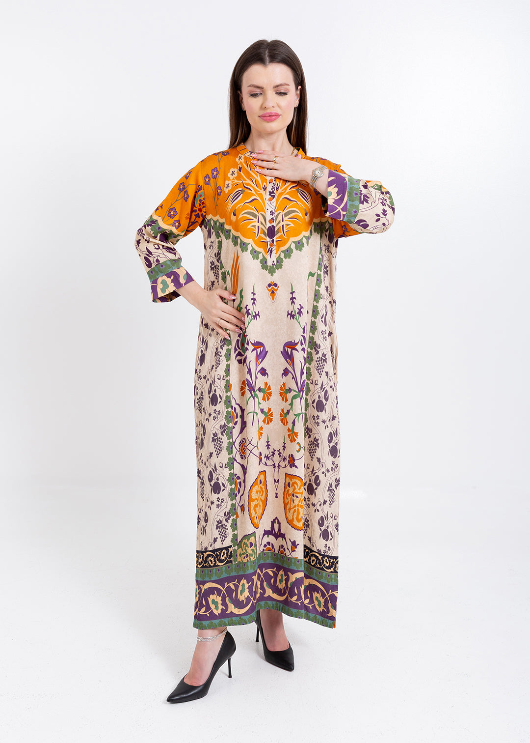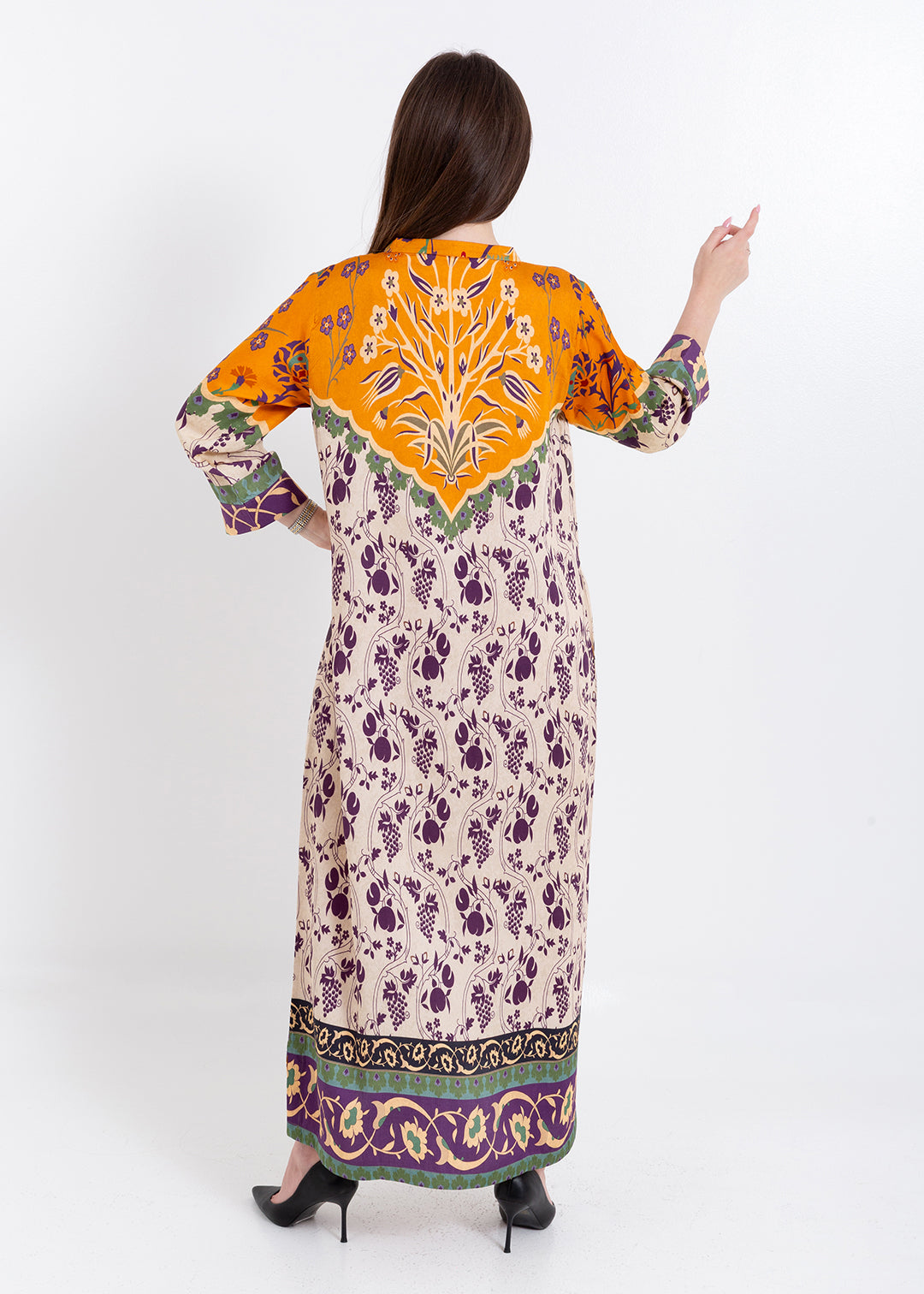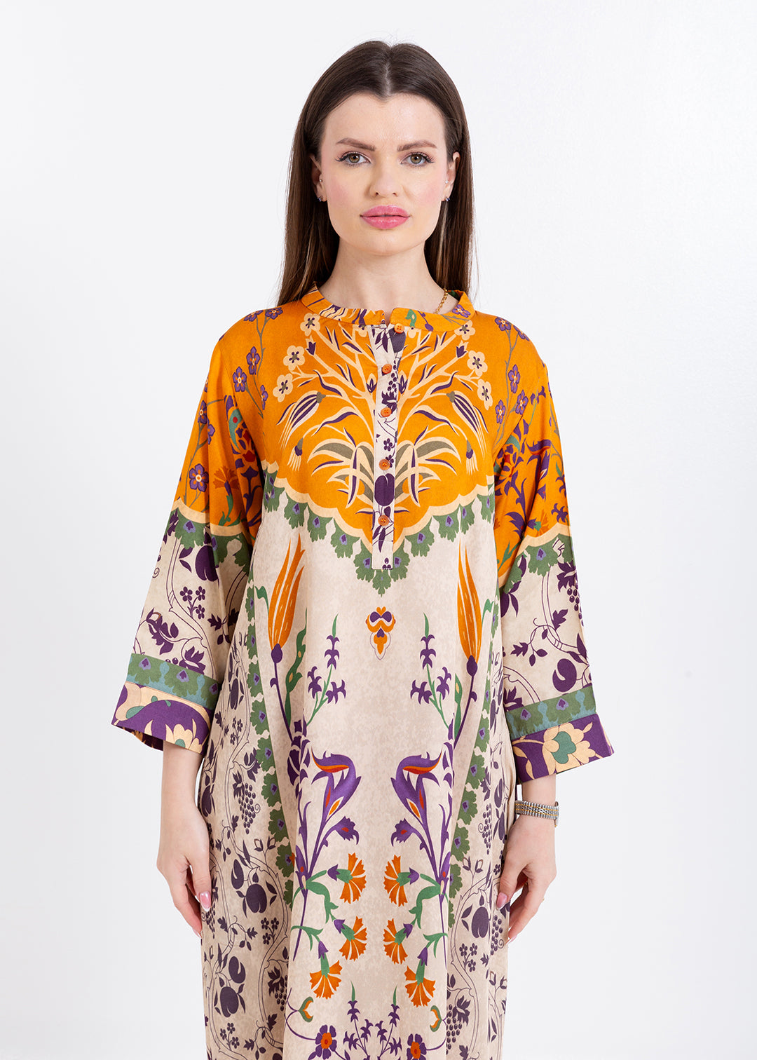 Product Description Elegant and artistically detailed, the Zoya Ivory Amber Kaftan Set is crafted in luxurious Premium Cupro Satin, offering a smooth, breathable...